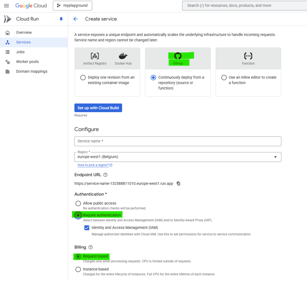 See below how I navigate to Google Cloud Run, click on Deploy GitHub project and then set up ‘Cloud Build’ by connecting my GitHub account to my Google project.